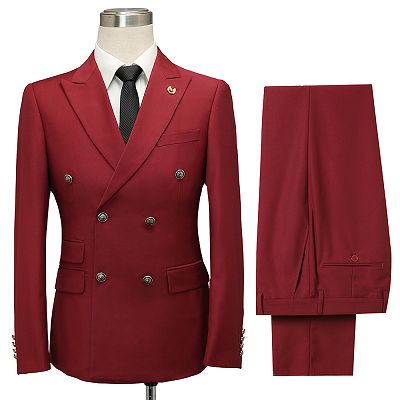 Nathan Burgundy Double Breasted Bespoke Business Suits For Men