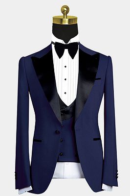 Walker Dark Navy Peaked Lapel Three Pieces Wedding Men Suits