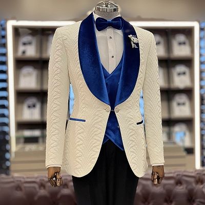Trendy White Jacquard Wedding Suit for Groom with Waistcoat