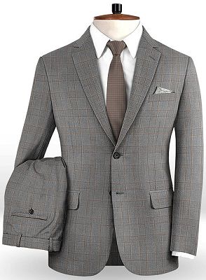 Gold Brown Plaid Prom Men Suits Online | High Quality 2 Pieces British Style Suit