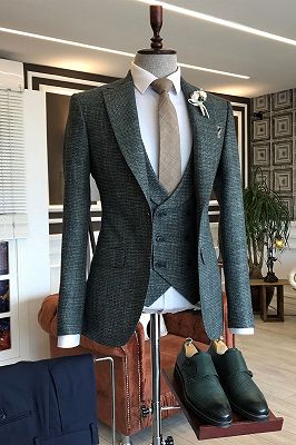 Charles Dark Gray Small Plaid Peaked Lapel 2 Flaps Slim Fit Business Men Suits
