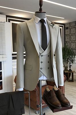 Elmer Formal Light Khaki 3-Pieces Double Breasted 2 Flaps Business Suits For Men