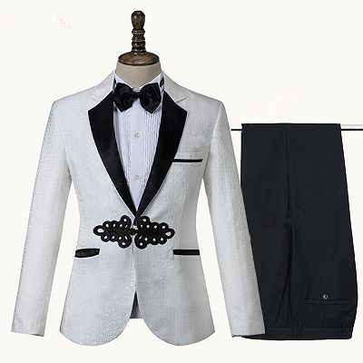 | product name: | Devin White Jacquard Knitted Button Fashion Wedding Suit |